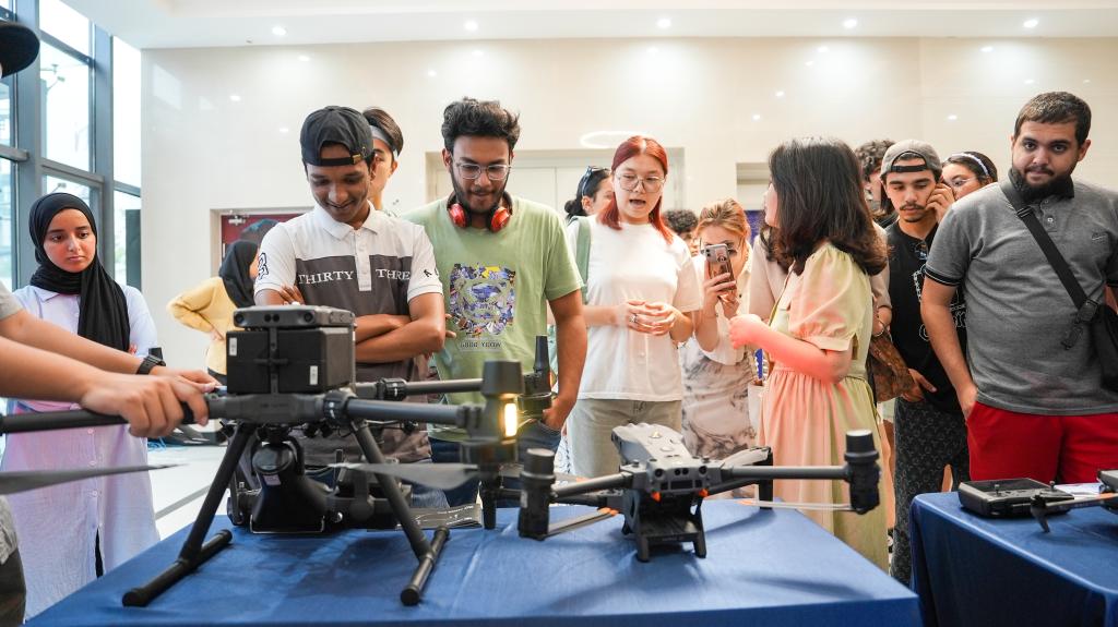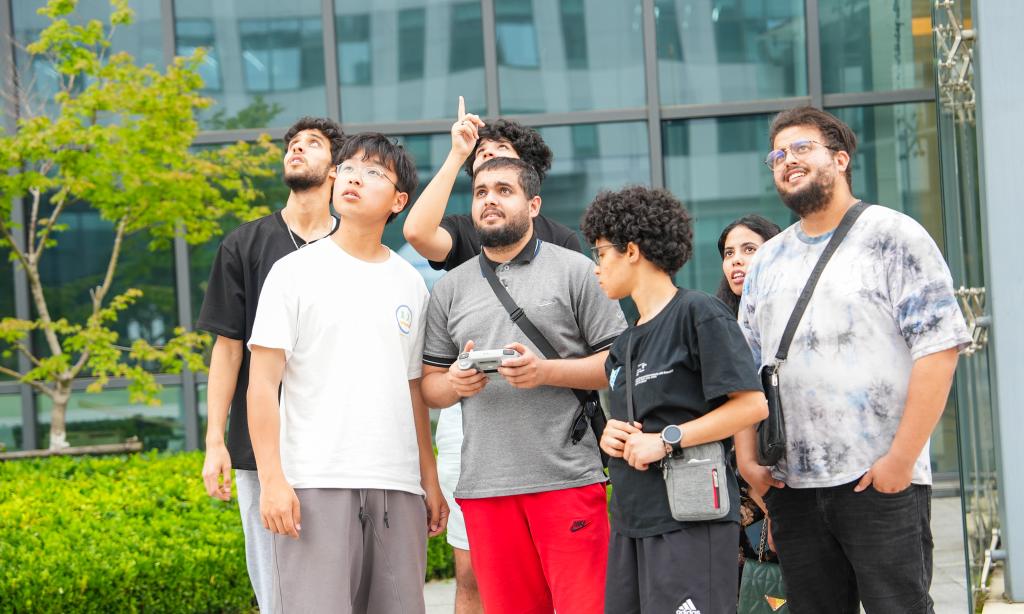 随后,留学生们重点考察了我校青年创业校友陈昱彤任总经理的企业嘉兴天旭航空技术有限公司。陈昱彤是我校机电工程学院电信专业毕业生,2019年10月,经中国电科36所党政联席会批准,离岗创业,现任嘉兴市模型无线电运动协会常务副主席。陈昱彤及其科创团队一介绍了公司的创业历程,向留学生们展示了无人机的创新技术以及科创助力未来生活的具体实践。留学生们饶有兴趣的进行了实际无人机驾驶操作,真实感受现代科技的无穷魅力,同学们异常兴奋。