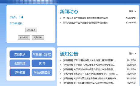 (二)参赛项目负责人登录教务处实践教学平台学科竞赛报名,流程如下: