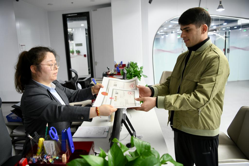 4月14日,来自塔吉克斯坦的嘉兴学院外国语学院留学生阿里,在南湖区行政审批中心领到了营业执照,这也是嘉兴学院大学生创业实践园自2013年开园以来的第一张留学生创业的营业执照。今年6月即将毕业的阿里在创业学院的帮助下,不断调整自己的创业意向,进行试错训练,终于创办了嘉兴希瑞里进出口有限公司。“嘉兴很美,也是创业的好地方,感谢嘉兴学院对我的培养,感谢创业学院对我项目的扶持,我决定留在嘉兴。”阿里说。