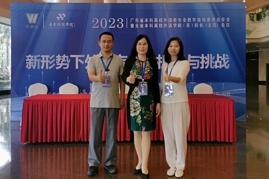 11月10日-12日,由广东省本科高校外语类专业教学指导委员会与外语教育出版社共同主办,广东科技学院承办的“广东省本科高校外语类专业教学指导委员会2023年年会暨全省本科高校外语学院(系)院长(主任)会议”在广东省东莞市召开。本次会议的主题为“新形势下外语专业机遇与挑战”,该会委员及省内40多所高校外语院(系)院长(主任)、专家学者、教师等200余人参加会议。广东省本科高校外语类专业教学指导委员会委员、我院执行院长郭遂红以及副院长袁鑫、德语专业主任周昳旸应邀参会,参加了主旨报告、资源分享、平行论坛等多个活动,共同探讨外语专业在新形势下的发展与建设策略。郭遂红院长应邀主持其中一场学术讲座以及会议闭幕式。