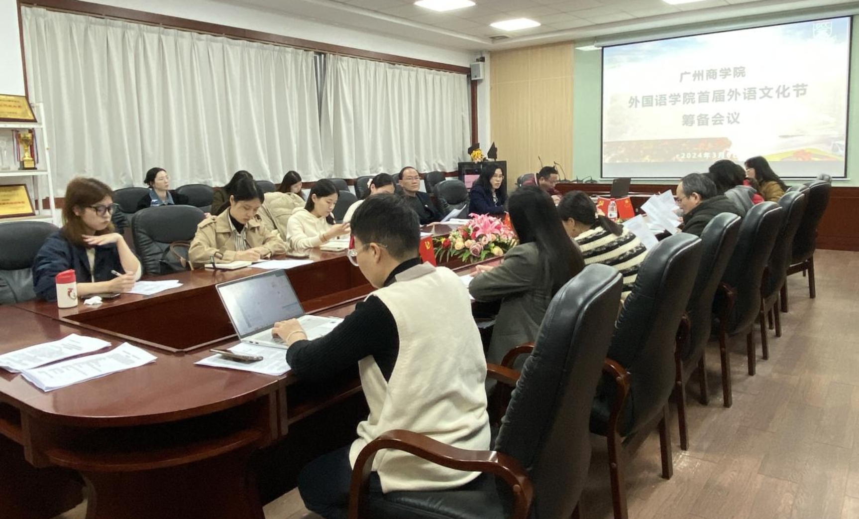 3月6日下午,外国语学院于第二行政楼308召开广州商学院首届外语文化节筹备会议,学院领导、系主任、学科竞赛指导老师、协会指导老师、学院办公室人员参加会议,会议由学院院长郭遂红主持。