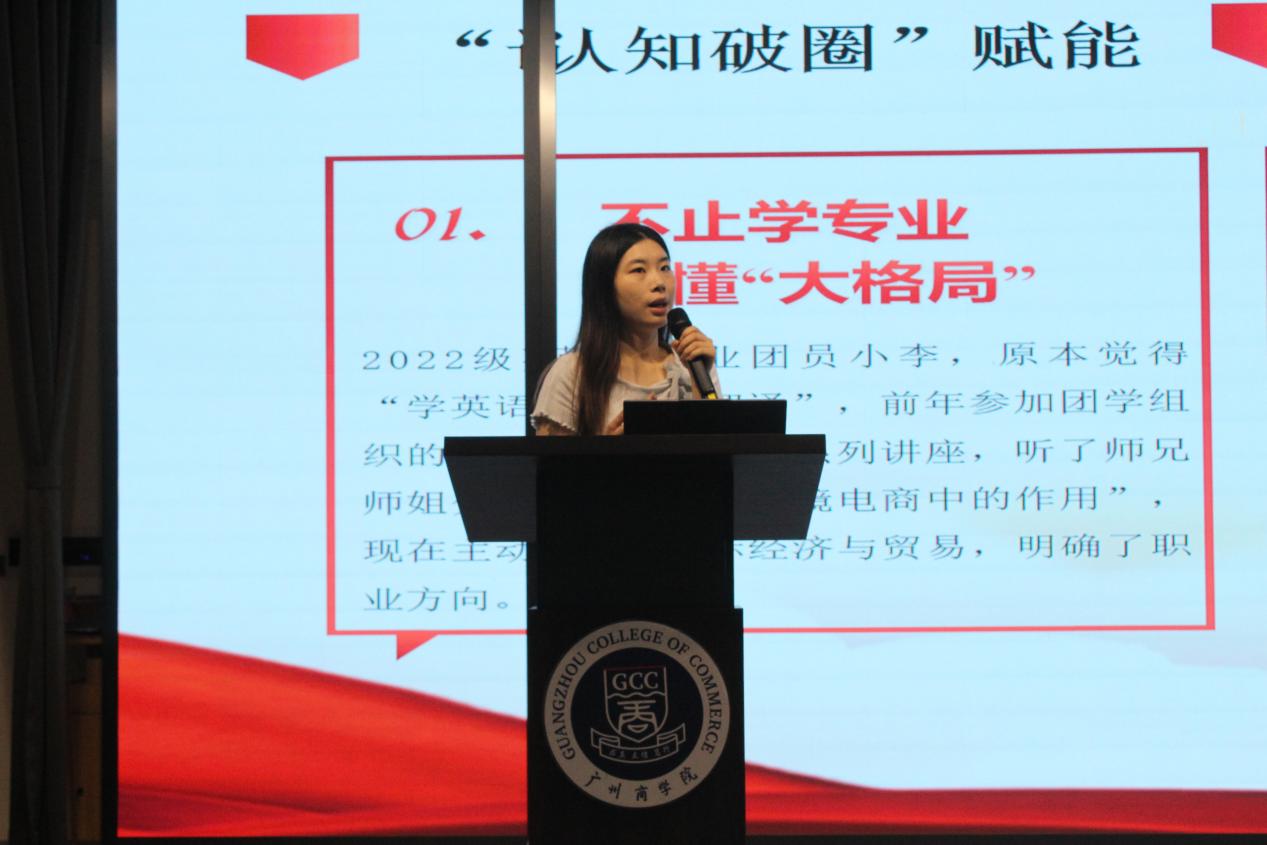 在入团启蒙教育部分,庄菲菲老师分别从“读懂共青团”“做‘有用’的团员”和“未来同行:团组织与‘你’双向奔赴”三个维度展开深入讲解。她以“我的团印象”为切入点,丰富了新生们对团组织的认识,号召同学们积极投递入团申请书,鼓励同学们以实际行动积极向党团组织靠拢。