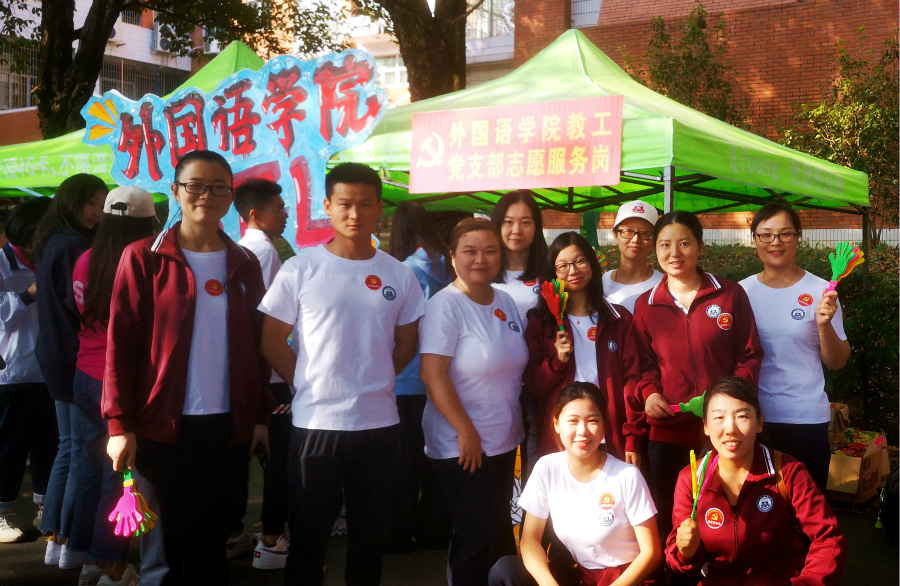 为进一步推动“不忘初心、牢记使命”主题教育往实里走,提升党员为民服务解难题的意识和能力,2019年11月7日-8日,我院教工第一、第二党支部组织全体党员在校运会期间联合开展“党员志愿服务岗”活动,为外国语学院参赛的教工运动员们提供了拍摄照片、照看衣物、供应茶水和预备药物等志愿服务。