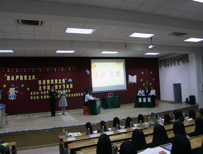 中英文互译大赛是学习会外国语学院分会每年都举办的传统项目,每一届比赛都会截取当年的热点时事或大型会议内容,让学生现场进行两种语言之间的互换翻译。旨在通过比赛的形式,让学生在关心关注国家大事的同时,提高外语语言的应用能力。所有参赛选手首先要参加第一轮笔试,经过笔试遴选出前6名成绩优异的选手进入最终决赛。