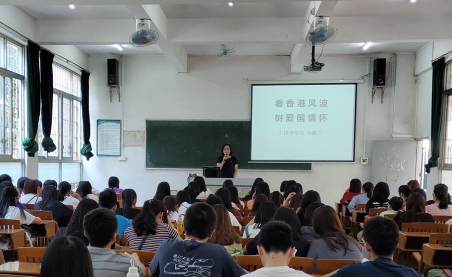 为让广大青年学生了解香港风波,激发同学们的爱国情怀,我院于9月26日下午在第三教学楼G06开展2019年秋季院长思政第一课,本次课程由院长马蔚兰主讲。