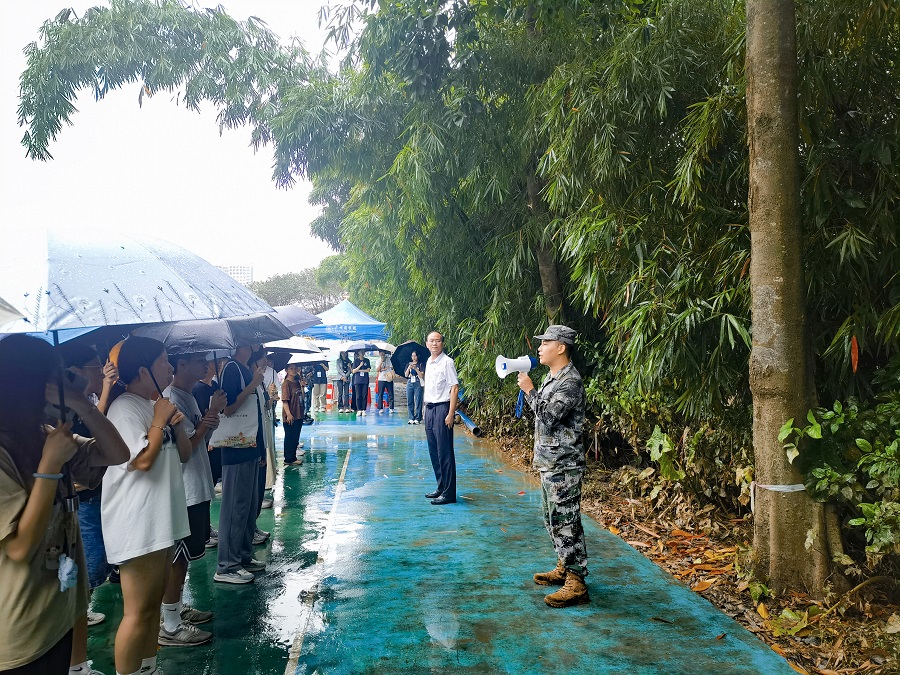 徐超作动员讲话。他指出,军训是新生的一门必修课程,从国防法的理论要求以及目前国家安全的现实形势出发,新生军训是大学生涯中必不可少的一环。徐超希望2023级新生们能在军训中发扬“直面困难,勇于亮剑的挑战精神;不抛弃、不放弃的坚韧精神;见红旗就扛,见荣誉就争的进取精神”三大精神,提出了“军训期间,我们要流血流汗不流泪,掉皮掉肉不掉队”的要求。教官陈永康副营长向新生们详细介绍了军训期间的各项要求。他希望同学们在为期14天的军训里,能始终坚守职责、服从命令并听从指挥,能够收获丰富的学习成果。