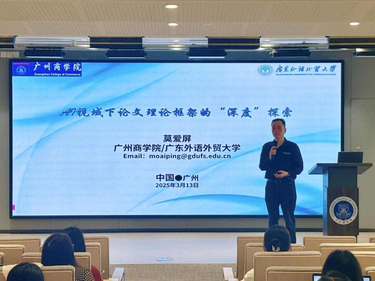 为深入探讨学术论文理论框架的构建逻辑与创新路径,助力学术研究实现高质量发展,3月13日下午,外国语学院在第八教学楼201阶梯教室举办“AI视域下的论文理论框架的‘深度’探索”专题讲座,此讲座由张蕾副教授主持,广州商学院外语学科带头人莫爱屏教授主讲,外国语学院和国际学院教师参与。