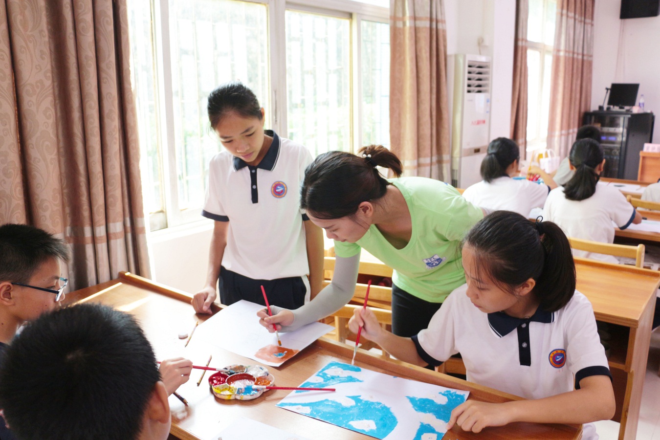 今天首先进行的是美工课,课堂上小老师李然、李晓霞承接昨日课程主题“畅想2035”组织学生进行自由绘画,旨在让学生们充分发挥自身的想象力,用画笔勾勒出美好的未来。随后开展了“医疗知识你我知”的主题班会,小老师余栩、欧春旭通过视频讲解、真人实操、知识竞答等丰富方式向学生们讲解了急救小知识,寓教于乐,不仅让学生们掌握了急救护理的基本技能,也增强了自我保护的意识。手语课堂上,小老师何洁瑜将党的十九大报告中提及的树立“国家观”与手语课堂相结合,带领大家学习了手语版《我爱你,中国》;在她的细心指导下,学生们很快学会了用手语演绎这一歌曲,此外在学习过程中,小老师还将歌曲所蕴含的家国情怀和学生们进行分享,共同感悟祖国强大背后带来的民族自信力。