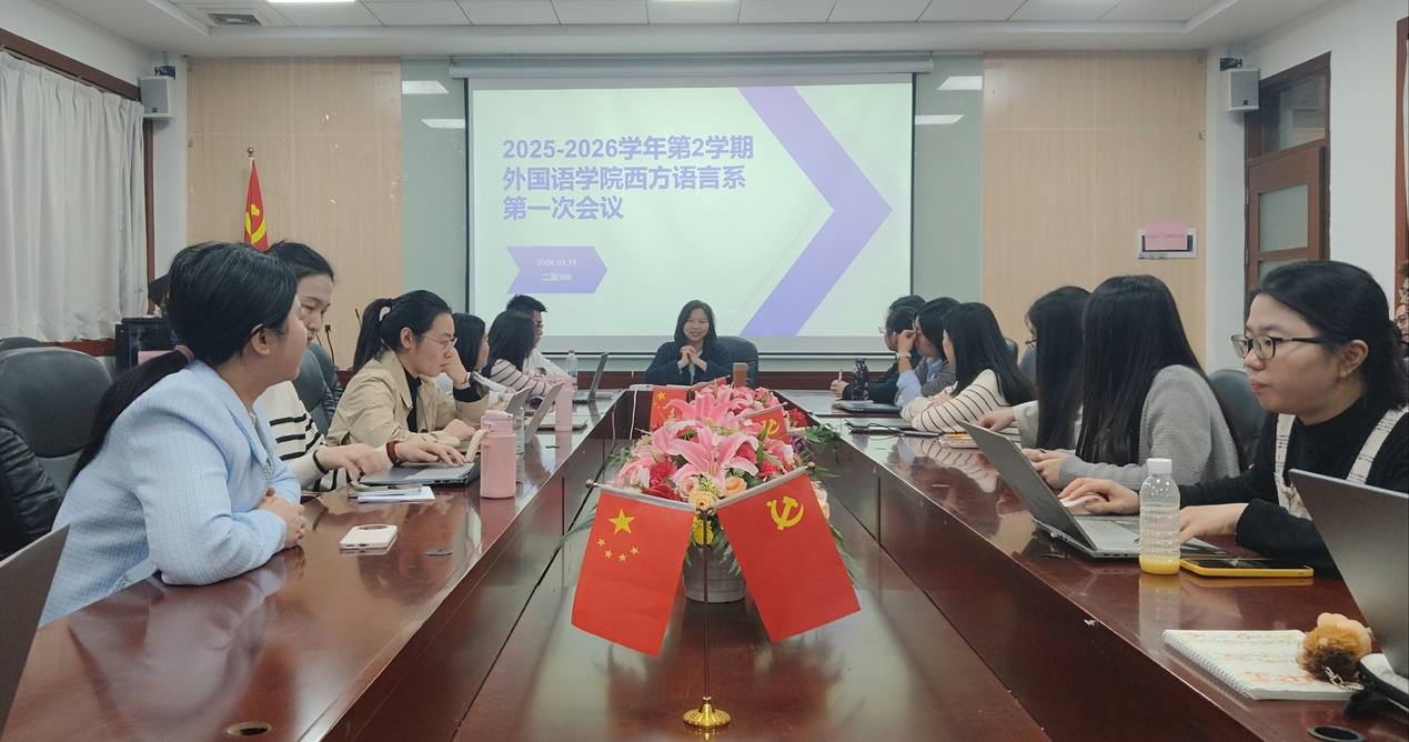 3月11日中午,外国语学院西方语言系在二政308会议室召开了2025-2026学年第二学期第一次会议,对新学期教学工作与系部重点任务进行了交流与部署。会议由西方语言系主任周昳旸主持。