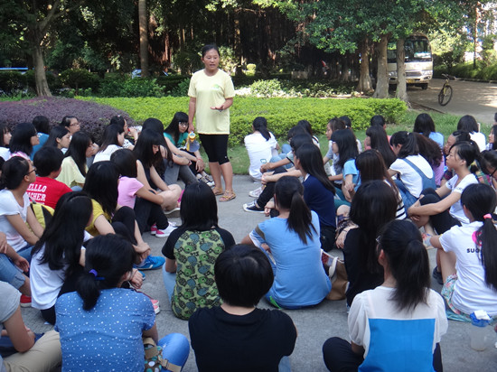 9月14日的上午,阳光明媚,碧草茵茵的足球场上,外语系新生学子们席地而坐,和团委学生会的指导老师刘丽萍、黄玉亭以及新生辅导员雷肖茹一起开怀畅谈,从个人的经验引导新生们早日适应大学生活,积极主动培养好人际关系。
