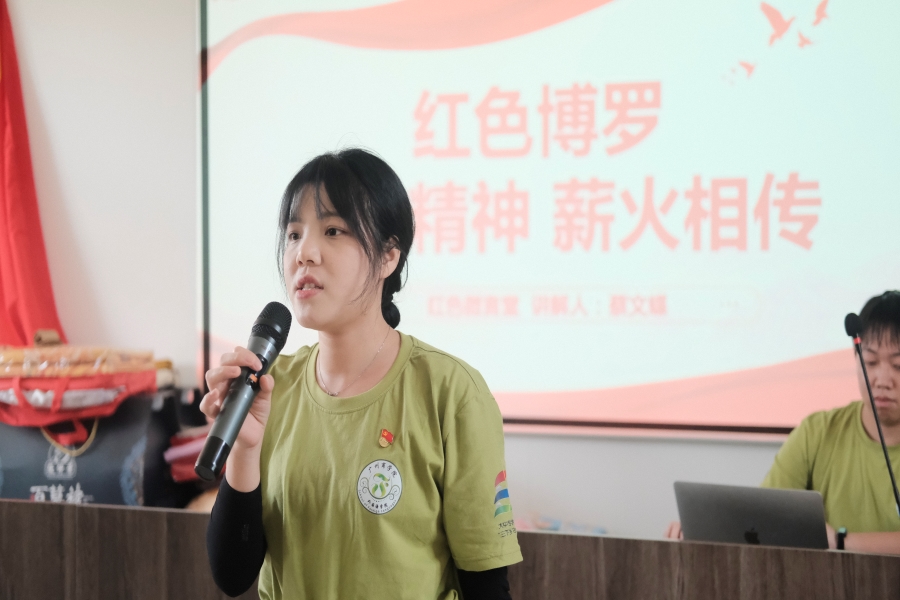 蔡文蝶课上介绍了惠州市博罗县东江纵队成立的历史背景与光辉历史。东江纵队从无到有,从小到大,从200余人逐步发展成为一支拥有一万一千余人的部队,成为了强有力的抗日武装力量。中共中央曾评价称东江纵队是“广东人民解放的一面旗帜”。