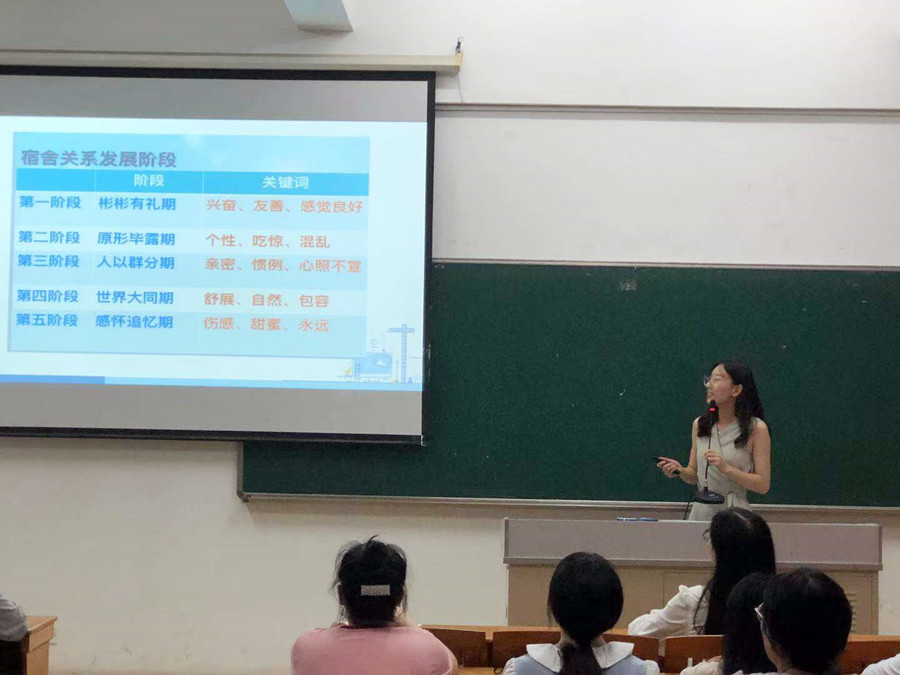 本次培训主要分为宿舍常见的四大问题,应对方法以及答疑解惑三大部分。吴欢老师提出宿舍的常见问题主要有生活习惯、学风问题、性格差异和特殊学生,在面对这四大常见问题的时候,同学们可以掌握创设宿舍人际交往环境、鼓励宿舍人际交往意愿、开展宿舍团体心理活动和锤炼宿舍人际交往技巧四大技能,来建设和谐美好的宿舍环境。她特别提出,同学们要对舍友关系有一个正确的认知,对于自己和舍友间的关系要以平和的心态来对待。答疑解惑环节,吴欢老师对已收集的调查问卷中的问题进行了整理,对于心委们在工作和生活中遇到的困惑进行逐一解答。