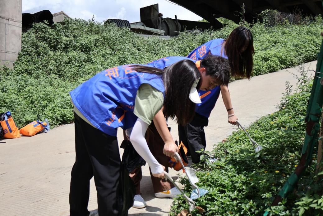 以护河工作为辅,还江河湖泊洁净。实践团成员身着志愿服,携带垃圾袋、扫帚、镊子等工具,顶着烈日,分工明确,有条不紊地对江边发现的枯枝杂草、垃圾、塑料袋、空塑料瓶、烟头等进行及时清理,为东江流域边的环境卫生贡献青春力量。