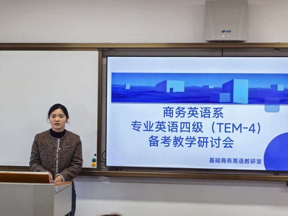 为明确英语专业四级(TEM-4)备考方向,提升备考效率,强化学风建设,商务英语系于3月18日下午召开了专四备考计划研讨会。会议由商务英语基础教研室主任张珊主持,全体商务英语系教师围绕专四备考策略、阶段计划制定等内容进行了深入的研讨。