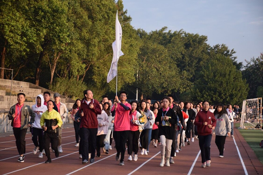 活动伊始,党总支书记徐超发表讲话,他从“体育锻炼在体育成绩中的重要性”,”养成良好体魄,助于心理健康教育”,“锻炼意志体质”,“培养良好的团队意识”,“提升体育之美的境界”五个方面突出强调了“德智体美劳”中“体”的重要性。同时提出了以提高集体主义意识的群体性体育锻炼的要求,提高同学们体育锻炼的积极性。紧接着在学生会体育部的带领下,全体同学进行了热身运动,做好晨跑前的充分准备。