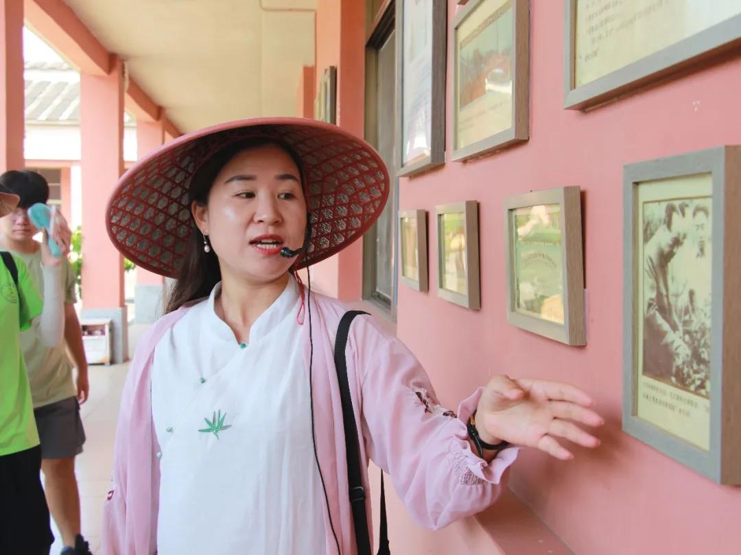 首先,阳光展翅实践团跟随着解说员走进生产车间外的走廊,解说员对着外廊上的每一张照片细心地讲解其背后的故事,从英德红茶种植历史、特色民俗、制作红茶的匠心路到八百秀才品牌建立,带领大家进入了那段历久弥新的岁月里。紧接着,阳光展翅实践团前往红茶园。未到茶园,先闻其香,放眼望去,茶树遍野满山。伴着茶香,解说员向队员们介绍英德红茶的生长环境、采摘技巧和不同红茶品种的种植培育方式。最后,茶艺师现场给队员们展示了泡茶的全过程。