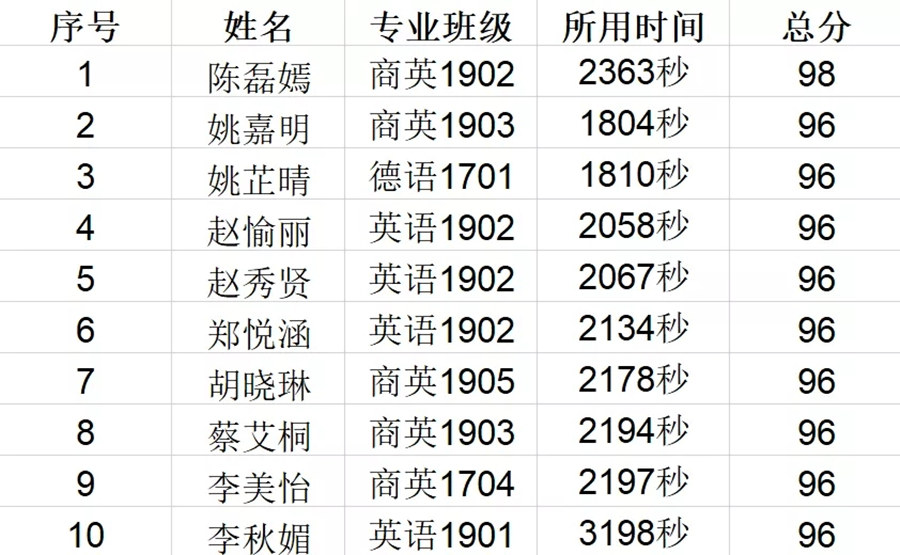前十名名单如下: