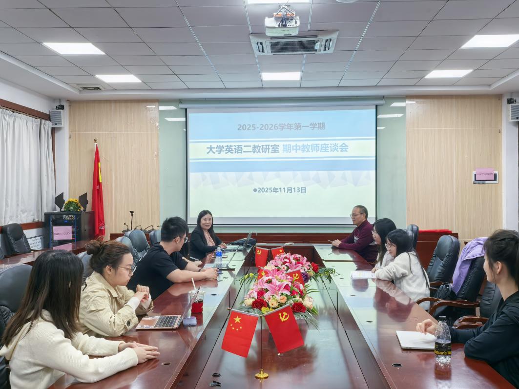 为了提高教学质量,11月13日下午,外国语学院大学英语二教研室在第二行政楼308室召开期中教学工作座谈会。