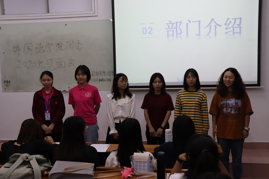 为欢迎固定志愿者的加入,增强志愿者们对部门职能的了解,促进志愿者间的交流,我院团委于10月27日19:30在三教208举办了2020年外国语学院团委见面会。外国语学院团委书记赖雯慧、副书记姚焕雯、秘书长郭懿及组织部部长陈冰出席了本次会议。