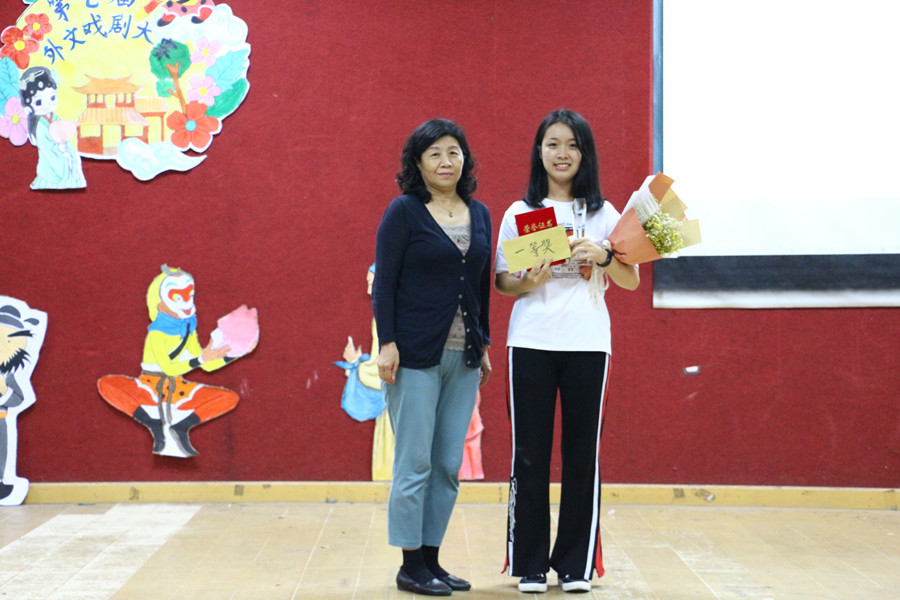 日语系主任王玉芝教授为获奖剧团颁奖
