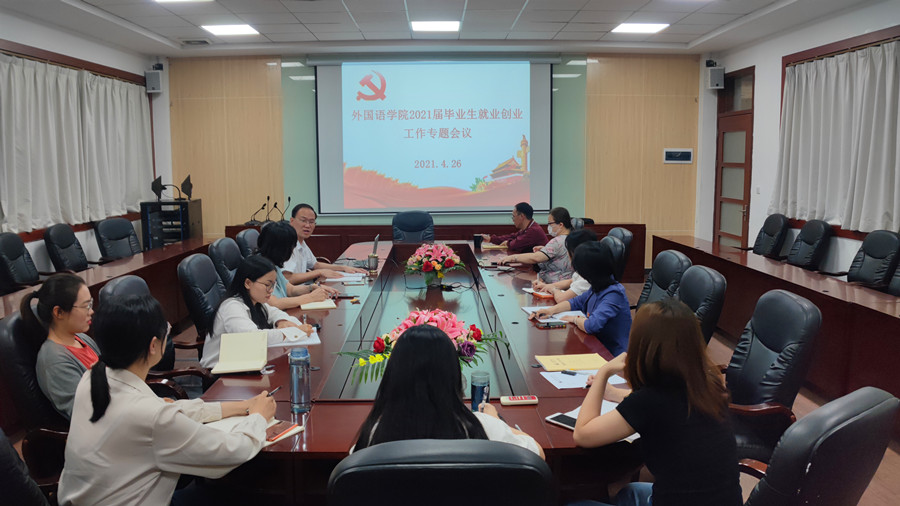 4月27日,外国语学院召开2021届毕业生就业创业工作专题会议,对学院2020届毕业生就业创业工作经验进行总结、分享,对2021届毕业生就业创业工作进行专题研讨和详细部署,明确学院就业创业工作的发展方向和重点目标。学院院长马蔚兰、各教工党支部书记、全体辅导员参加会议,此次会议由学院党总支书记徐超主持。