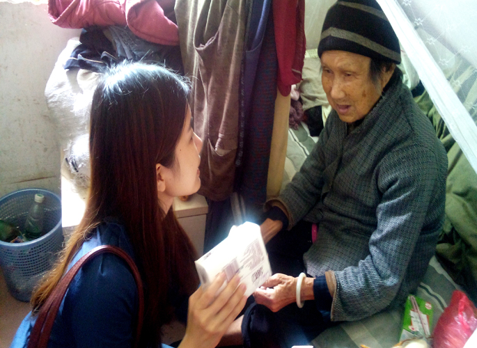 为了进一步提高同学们尊老、敬老、爱老意识,弘扬中华民族的传统美德。 3月28日上午,中国特色社会主义学习会外语系分会的学员们携手艺术系分会的学员共同前往镇龙敬老院探访孤寡老人。