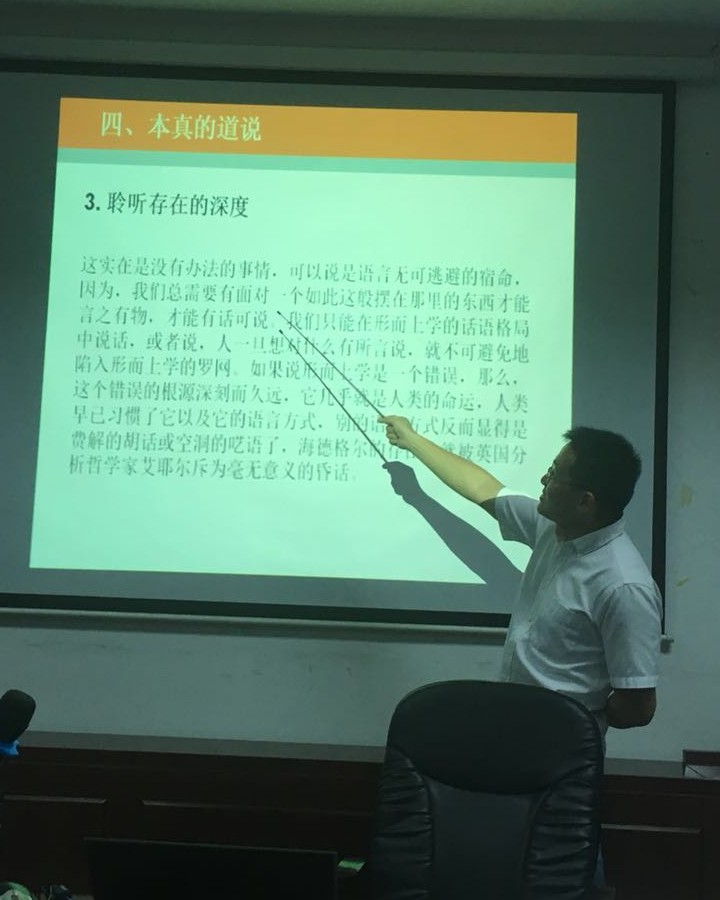 5月30日16点20分,外国语学院举办了第17期科研工作坊。此次科研工作坊主讲人是德语系谢晓东老师,主题为“海德格尔的语言哲学”。外国语学院副院长袁鑫以及外国语学院部分专任教师参加了本次讲座。