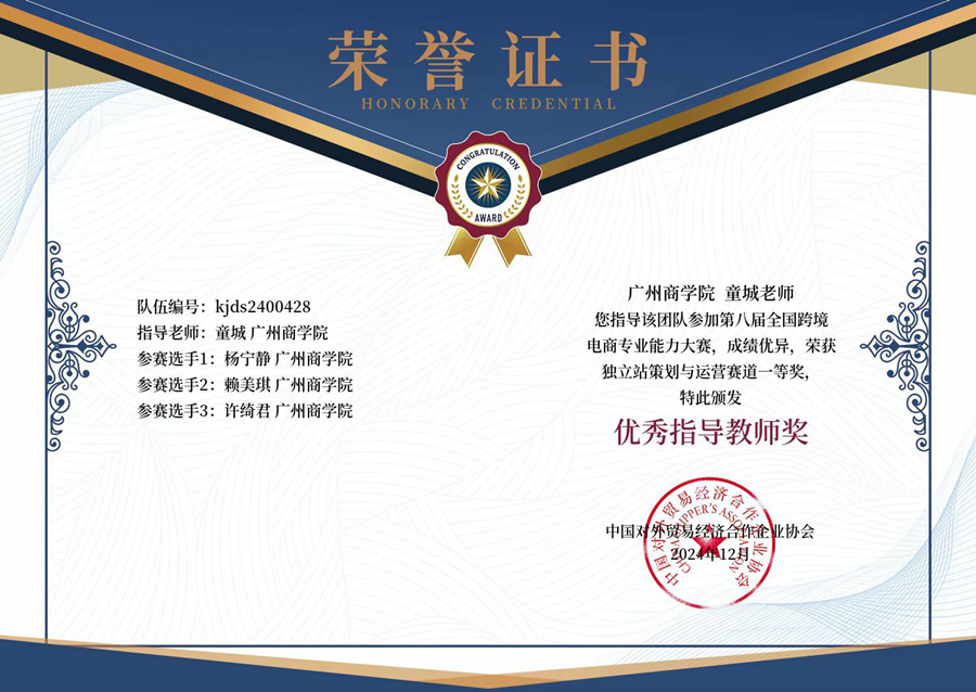 全国跨境电商专业能力大赛旨在展示各地院校跨境电子商务专业方向的教学成果,优化国际贸易高技能人才的培养与选拔机制。此次大赛佳绩,不仅是对我院学子个人能力和团队协作精神的肯定,更彰显了我院在跨境电商教育的深厚积累。未来,我们将持续强化教学与科研,提升教学质量,致力于培养更多高素质、高技能的跨境电商人才,为行业发展贡献力量。