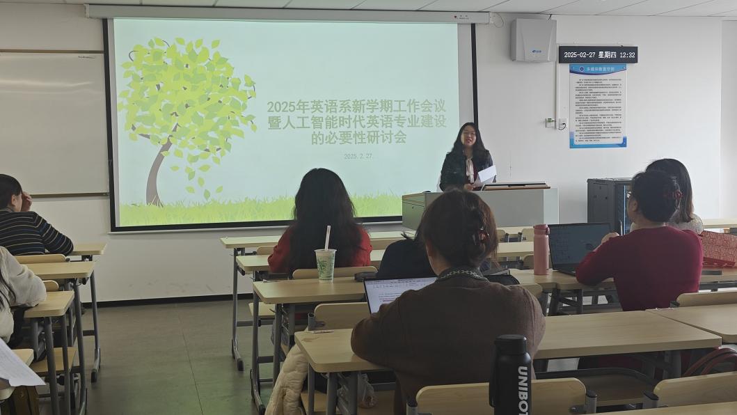 2月27日,英语系于第八教学楼517教室召开“2025年英语系新学期工作会议暨人工智能时代英语专业建设研讨会”,此次会议对于明确新学期教学方向、推动英语专业与人工智能深度融合发展,具有重要意义。会议由系主任程瑜瑜老师主持,英语系全体教师参加。