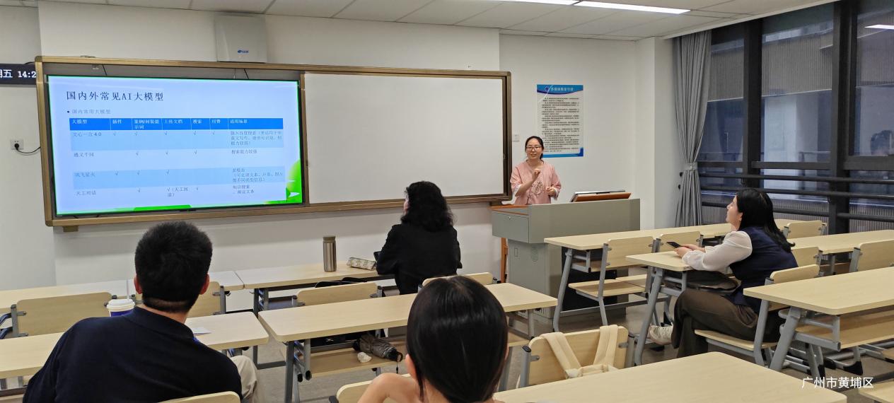 章睿霖老师则以“常见网络工具分享”为题,对AI大模型在外语教学工作中的的应用进行了讨论。她首先介绍了国内外常见的AI大模型,如Chatgpt、Newbing、文心一言和讯飞星火等,详细阐述了这些模型在自然语言处理、计算机视觉、语音识别等领域的广泛应用,并分享了如何利用这些工具进行语言润色,辅助外语教学,为在场教师提供了丰富的教学辅助材料。