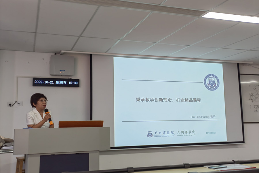 为了达到“以赛促教、以评促教”的目的,10月24日下午,外国语学院在第八教学楼411教室和腾讯会议平台同时举行“第一届广州商学院课堂教学比赛”初赛评分标准解读会议。会议由外国语学院副院长袁鑫主持,黄吟教授和陈刚博士主讲,全体新入职教师出席了本次会议。