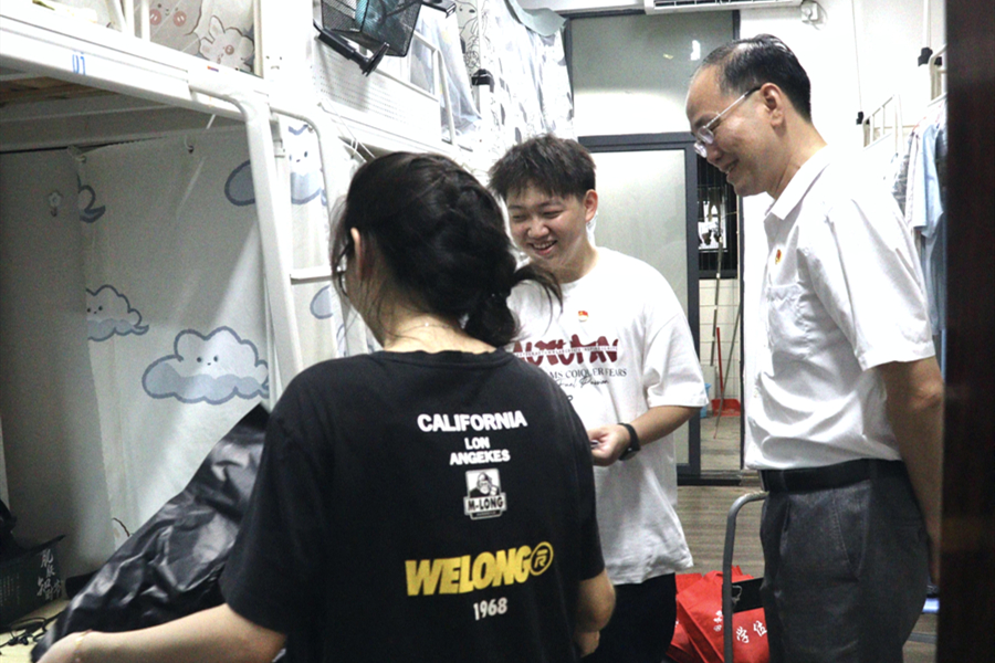 为进一步做好2024届毕业生离校前的教育、管理和服务工作,确保全体毕业生安全、平稳离校,6月22日晚,外国语学院党总支书记徐超带领辅导员老师们,积极深入毕业生宿舍,倾听毕业生心声,为即将毕业离校学生送去关怀和问候。
