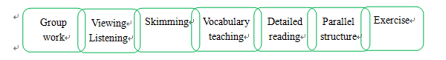 首先,新教师杨俊欣针对《新一代大学英语综合教程》第一单元课文“Brave New Worlds”阐述自己的教学设计,他的教学设计主要基于课文以及课后练习展开,共分为七个环节: