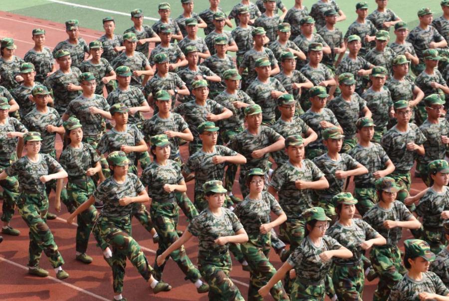 新生正在练习正步