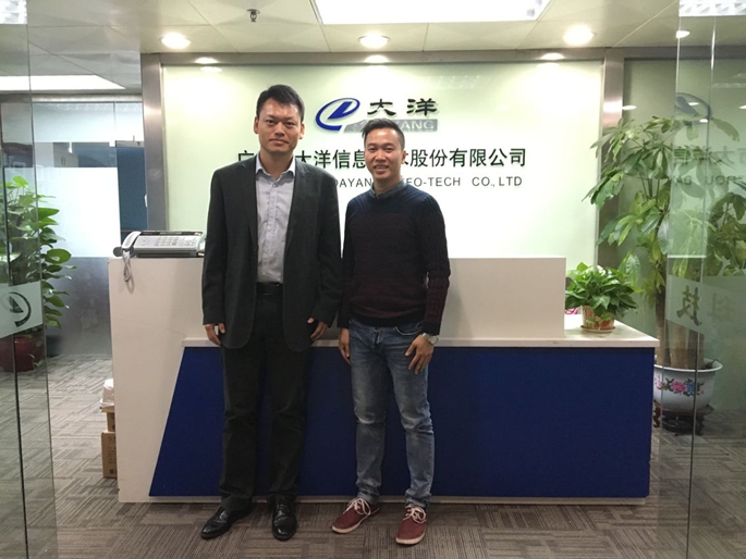 11月29日下午3:00,广州商学院外国语学院副院长郭航应邀前往广州市大洋信息技术股份有限公司进行企业回访,商谈校企共建跨境电商产业园事宜,受到了杨华智总监的热情接待。