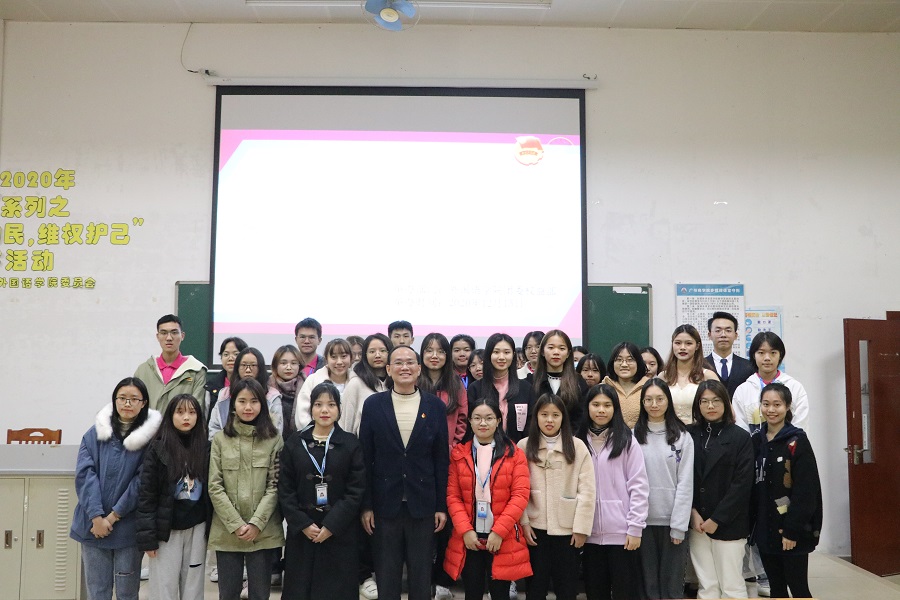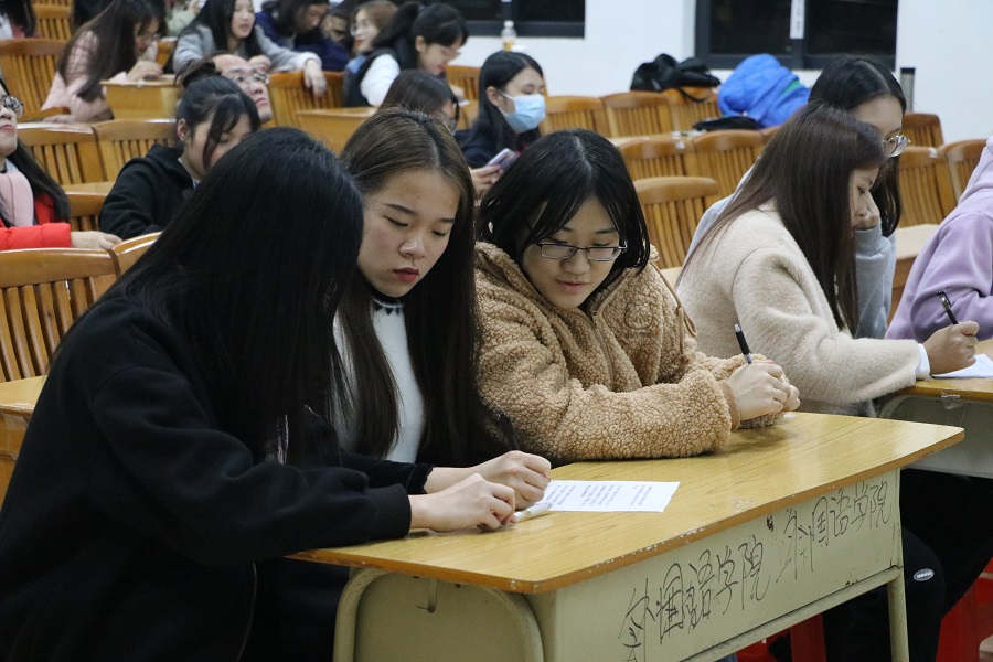 为维护外国语学院学子的权益、提高学生们的维权意识,宣传维权思想并响应国家对防疫防控、节约粮食的号召,加强同学们的节粮防疫意识,外国语学院团委权益部于11月15日19:00在四教310举办了主题为“防疫在心,节粮为民,维权护己”线下权益活动。出席本次活动的嘉宾有外国语学院党总支徐超书记、20级辅导员樊丽梅以及蔡文蝶、团委副书记姚焕雯、组织部部长陈冰。