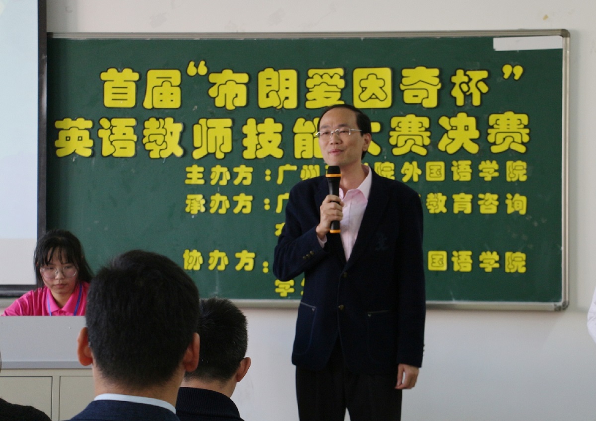11月29日下午,外国语学院首届“布朗爱因奇杯”英语教师技能大赛决赛在四教408课室举行。外国语学院院长马蔚兰教授,布朗爱因奇教育中心校董陈丽华,外国语学院副院长袁鑫、郭航、龙海英,学院党总支书记徐超,学院学生会指导老师郑灿玲出席了比赛现场。担任本次大赛的评委是外国语学院教师李海燕、姚丽芳、梁嘉铭,布朗爱因奇教育中心教学总监罗宝妍、陈礼彬。
