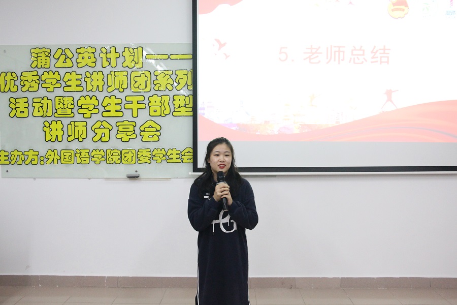 最后由伍思颖老师进行总结发言。本次活动她对三位学生讲师的分享表示肯定,表扬优秀学生讲师们的分享十分精彩,同时,伍老师希望同学们能思考自身和榜样学长的差距并向他们学习,也希望同学们能在“蒲公英计划”优秀讲师团系列活动中有所收获。