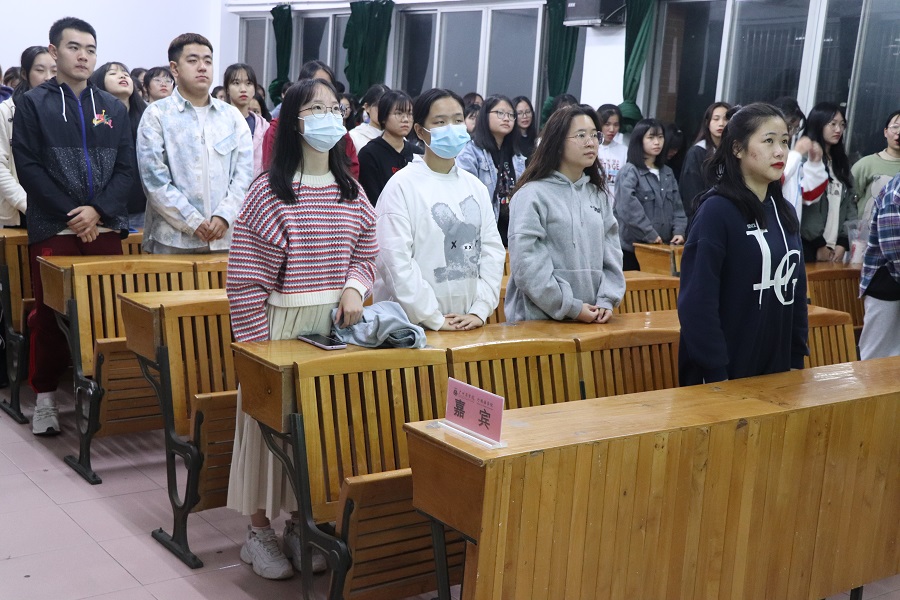 活动伊始,主持人进行简短介绍后全体起立奏唱团歌。黄雨珊从“为什么要担任学生干部?”“如何平衡学生与干部?”以及“怎么当一名学生干部?”三个角度向同学们分享经验。同时她强调坚守初心的重要性,需要同学们有足够的自制力才能平衡学生与干部生活。对于“怎么当一名学生干部?”,黄雨珊主要从自身职责、心态与情绪等方面着手,并告诫同学们知止而有得。
