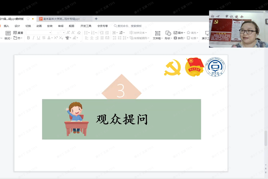 为贯彻落实党的二十大精神,推动高等教育高质量发展,深入开展“我为群众办实事”实践活动,3月2日,外国语学院教工党支部、校学生会、学生学习支持中心通过康小丁网络平台联合举办了“春华讲坛”之大学英语四六级考试翻译与写作专题经验交流会。外国语学院党总支宣传委员潘文晗老师担任本次活动主讲教师。