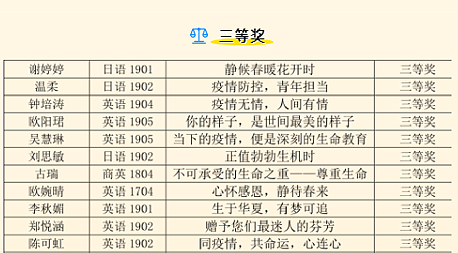 在此次防疫征文比赛中,我们共收到了662份作品,经老师们严格把关和筛选获奖名单已出炉: