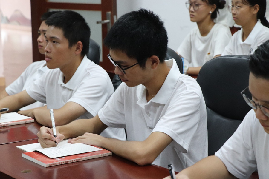 课程伊始,张永刚教授从志气、骨气、底气出发,提出“青年当立大志长志气、坚定信念强骨气、跟党领导出底气”三点观念。每一代青年都有自己的际遇和机缘,当代青年有着天将降大任的使命,应当在战风斗雨中乘风破浪,在守正创新中成长成才。紧接着,在学生代表的心得分享中,大家一同了解到,当下优秀青年是如何立下鸿鹄之志并付诸行动加以实现、是如何在各项实践活动中练就钢筋铁骨、是如何在不断尝试中拥有直挂云帆济沧海的勇气。全体工作人员认真听讲、仔细记录,在前人的道路中进一步明确了自身的时代使命。