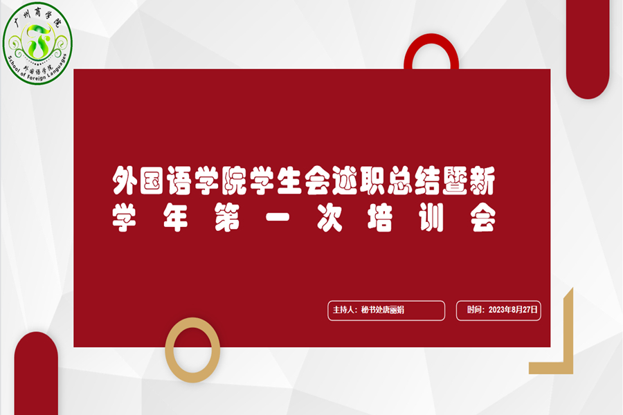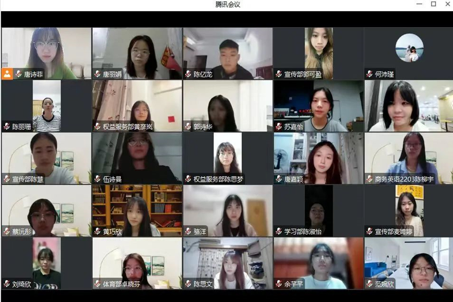 为提高学生会成员的工作能力,提升各成员的政治素养,在新的学年中更好地服务同学、更好地进行各项工作,我院学生会于8月27日19:30在腾讯会议召开学生会述职总结暨新学年第一次培训会。出席此次会议的有我院学生会指导老师何沛瑾、23级商英辅导员陈丽珊以及外国语学院学生会全体成员。