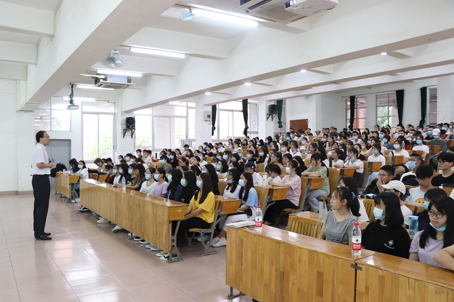 课堂上,徐超书记以“大学之道,在明明德,在亲民,在止于至善。”为开篇,他强调教育的重要性,重视学院学风的建设,提出新生在未来四年应学会求知、做事、合作与做人。其次,他以认识广商与悦纳广商的方面展开,依次讲述了广州商学院发展的历史沿革、发展历程以及办学条件,并详细讲解2020年本院的中心工作和未来发展机遇。接着,徐超书记提出学院的人才培养目标,阐述学院为建设优良学风而提出的规章制度,进一步讲述学风建设的重要意义,强化学院转变学生学习方法的措施,以真实案例说明学院近年所取得的成效。