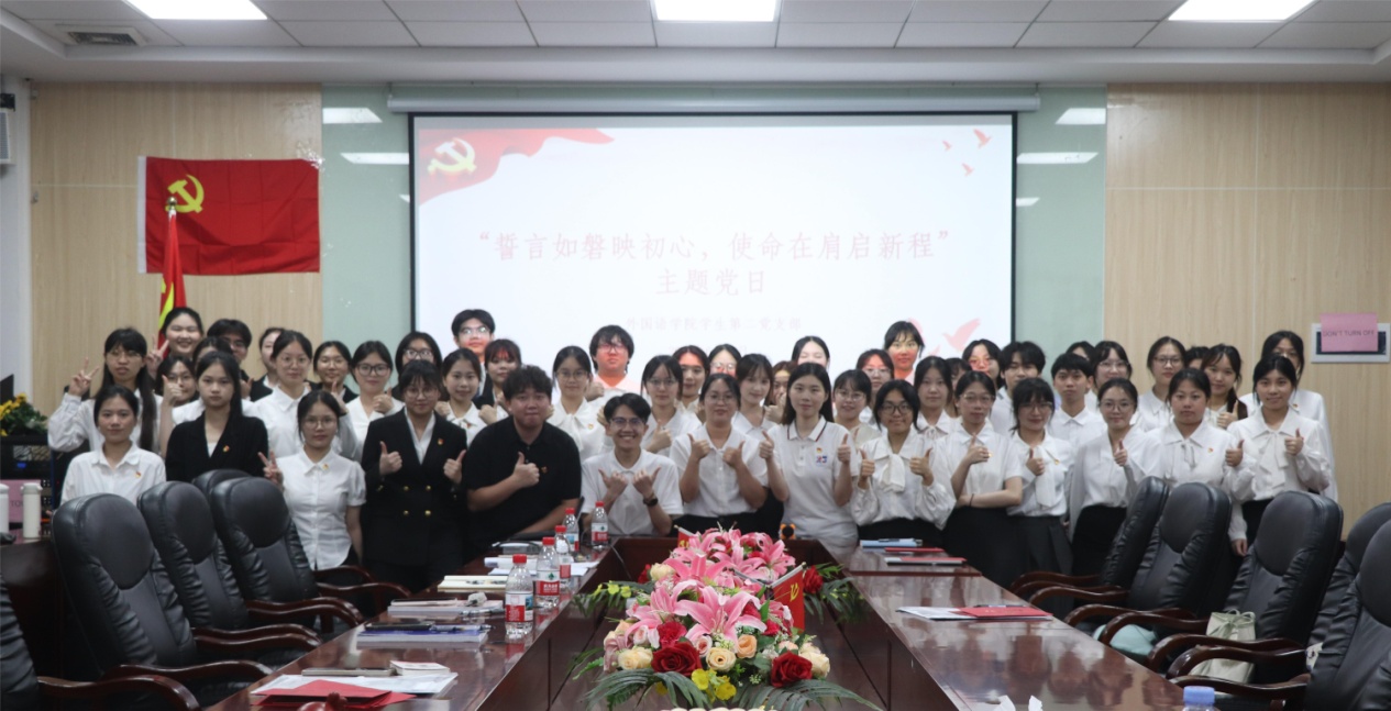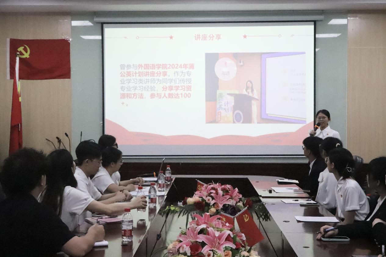 为巩固深化党的创新理论武装、纵深推进全面从严治党的重要举措,进一步推动党员发展工作提质增效,夯实党支部基础建设,外国语学院学生第二党支部于6月20日中午在第二行政楼308会议室召开深入贯彻中央八项规定精神学习教育专题会暨接收预备党员通表大会。参加本次会议的有外国语学院学生第二党支部书记谢敏丽,教师党员庄菲菲、陈钰洵、李思浩,全体学生党员及拟接收为预备党员的发展对象。