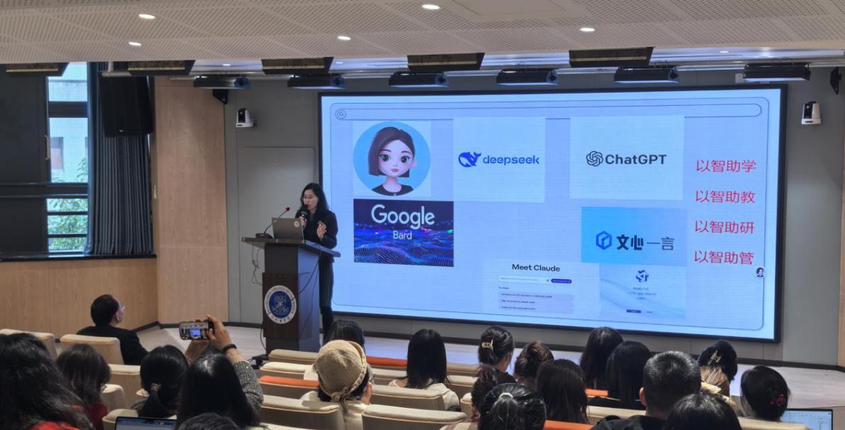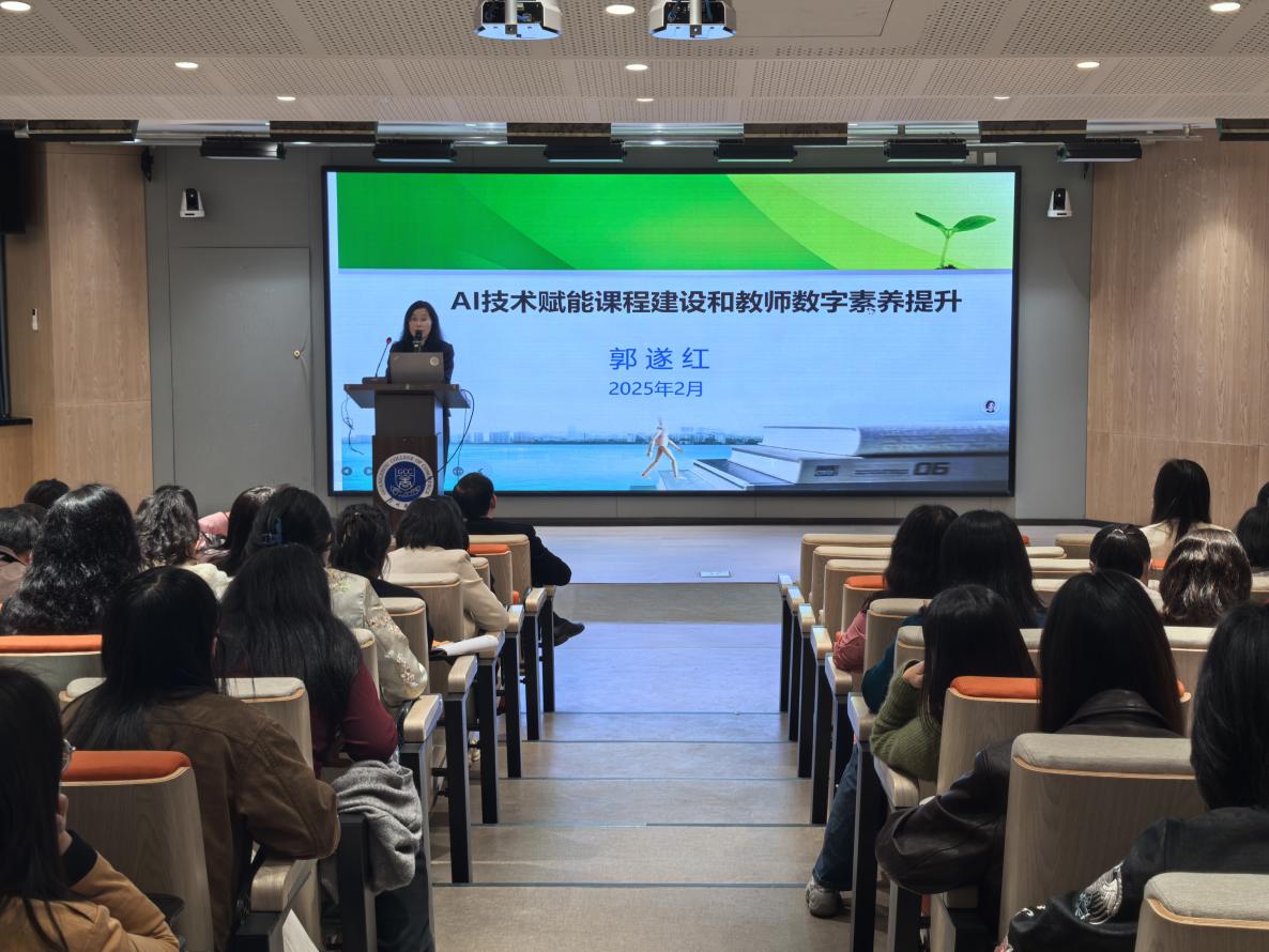 为帮助教师利用AI赋能外语教学,推动课程建设,提升教师的数字素养,2月20日下午,我院在第八教学楼203阶梯教室举办了AI技术赋能课程建设和教师数字素养提升专题讲座,讲座由外国语学院院长郭遂红主讲,外国语学院全体教师参与了讲座。