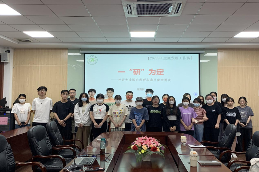 为进一步提高外国语学院学生学习的积极性,义务为有意继续深造的学子解决外语专业考研、出国留学择校与准备就业问题,6月8日晚7点,我院于二政308会议室开展了一“研”为定---外语专业国内考研与海外留学漫谈讲座。林嘉新博士出席讲座并为同学们作考研指导,外国语学院2020、2021级部分学生参加本次讲座。