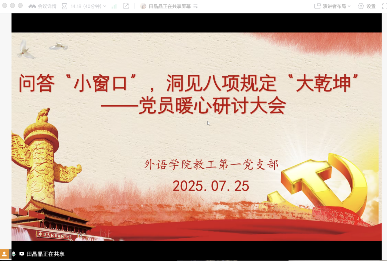 外国语学院教工第一党支部开展暑期线上党日活动——“深入贯彻中央八项规定精神学习教育”学习交流会