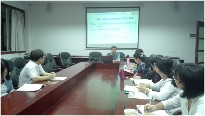 11月10日,外国语学院商务英语沙龙第22期在D308召开,本次沙龙围绕“商务英语研究的宏观与微观”这个论题展开探讨,曾利沙教授从宏观与微观两个角度给在座教师们详细讲解商务英语研究的不同路径和方法。