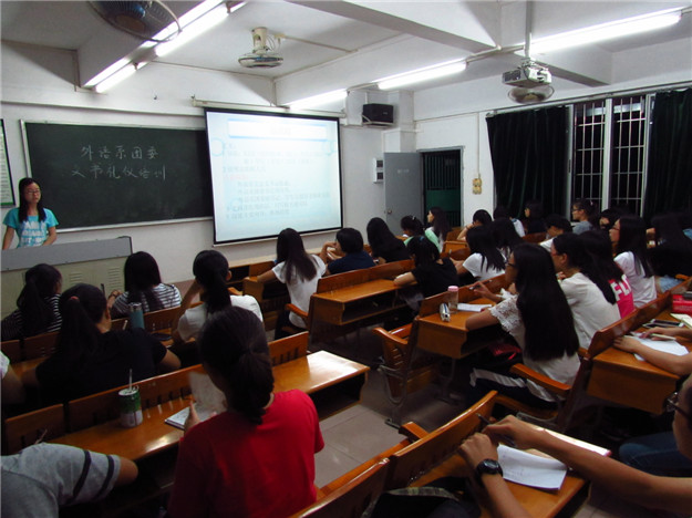 2014年10月31日晚7点半,外语系团委于BG103举办了文书礼仪培训。本次培训会由团委秘书长黄琳盈主持,全体干部干事参与了此次培训会。